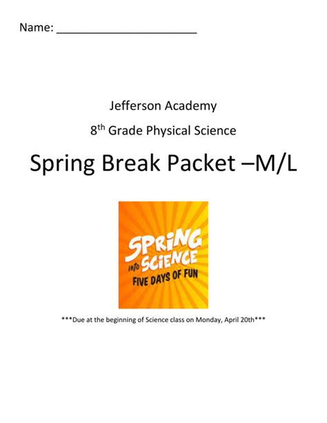 Download 8th Grade Science Spring Break Packet Answers Doc